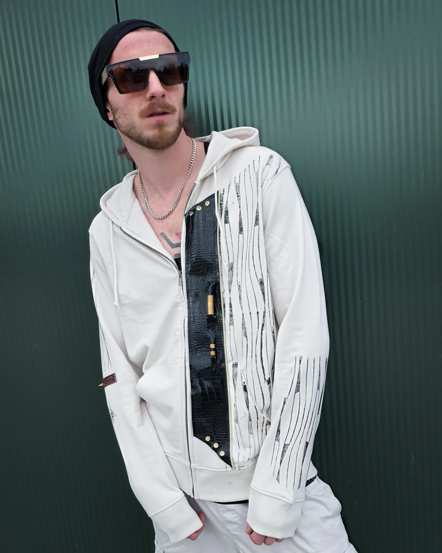 Einige unserer Unikate gehen noch einen Schritt weiter. Diese ausgewählten Einzelstücke werden von Hand gebleicht, mit Patches veredelt oder mit Ösen und Nieten gestaltet. Dazu werden edle Accessoires in Gold- oder Silberoptik eingearbeitet, die jedem Unikat einen hochwertigen, kunstvollen Akzent verleihen. Jede Veredelung entsteht in sorgfältiger Atelierarbeit und macht jedes Piece zu Soulwear mit Charakter und Ausdruck.